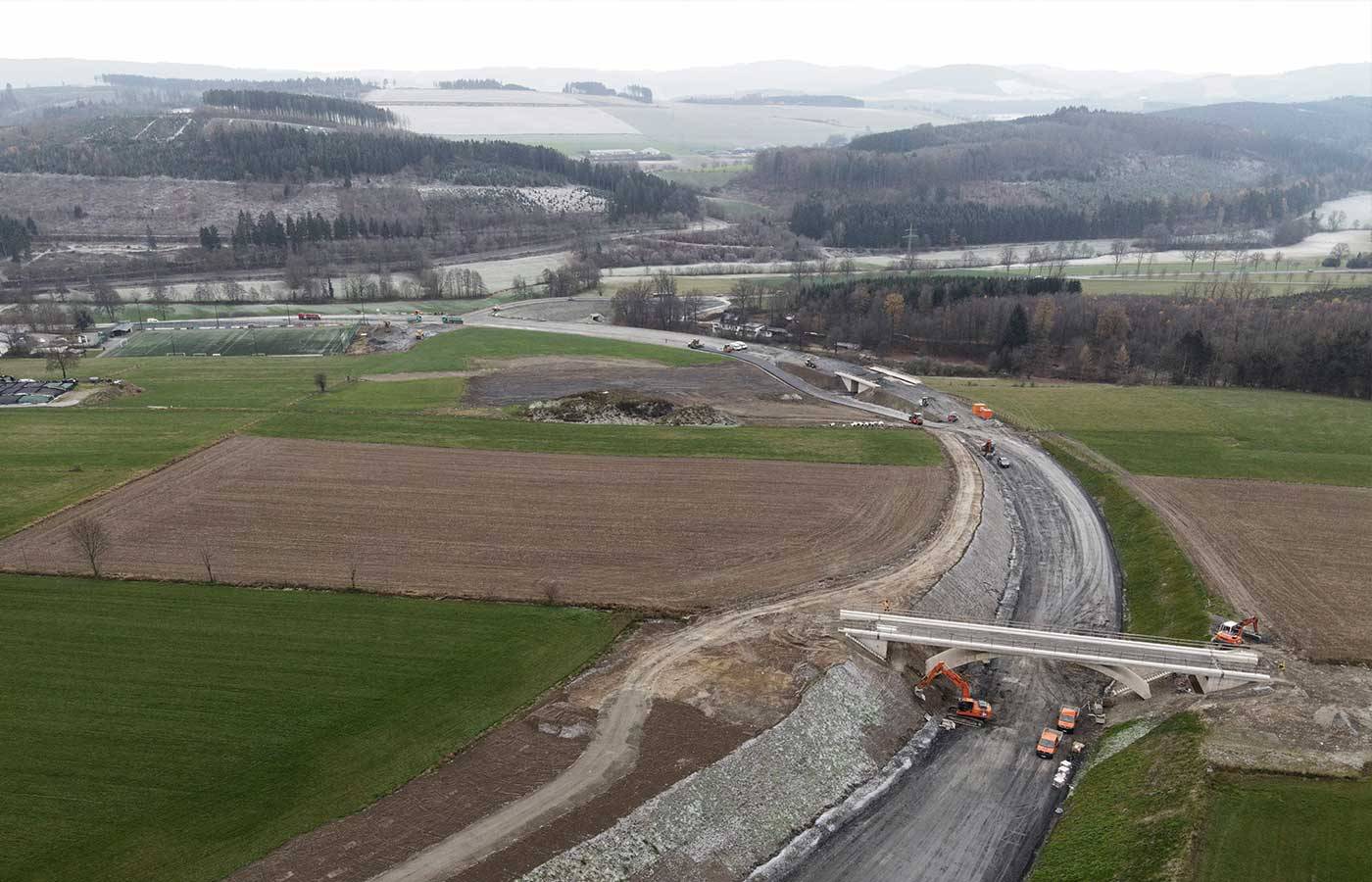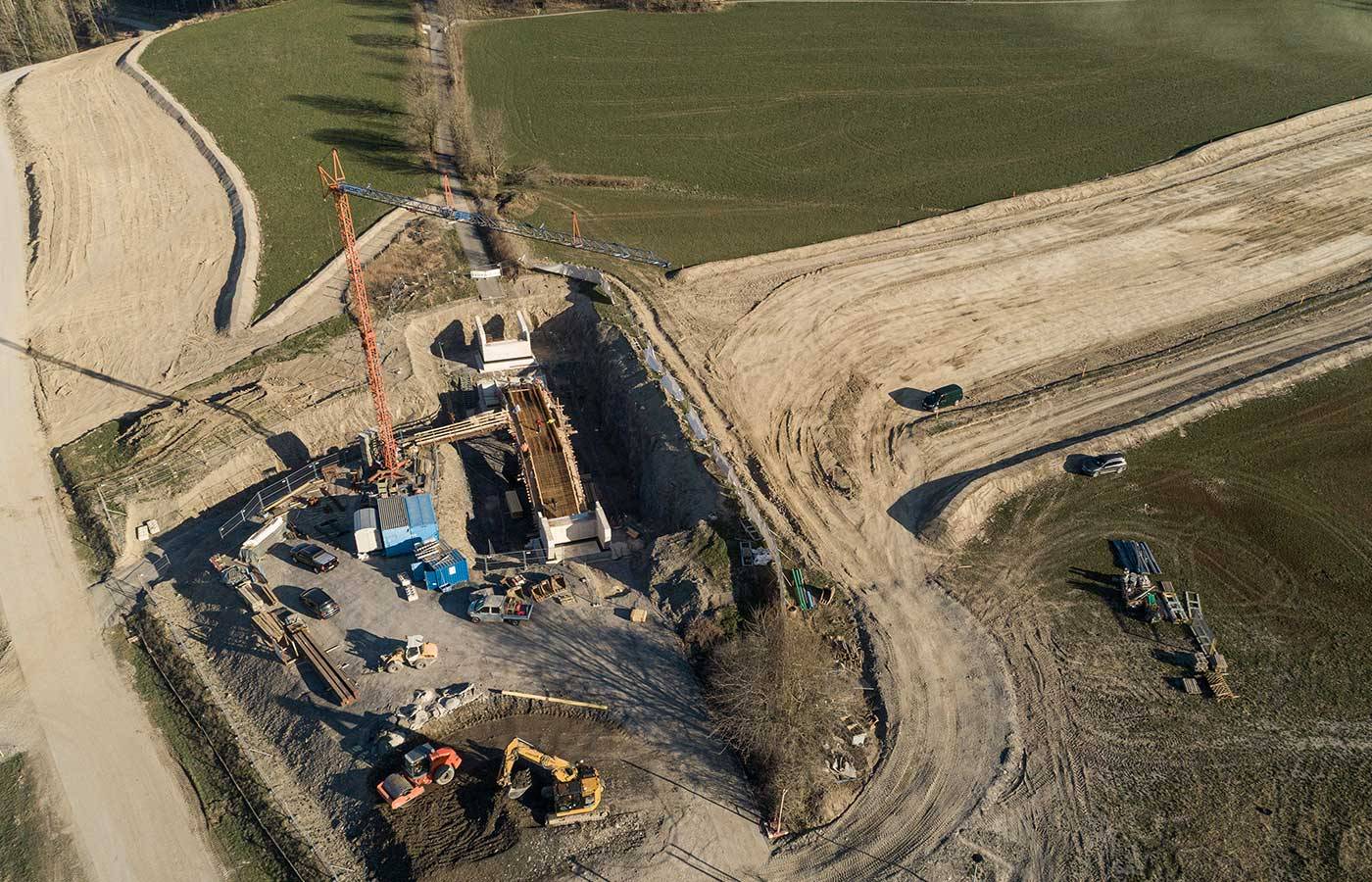 Für die Trassenführung der neuen Ortsumgehung wurden fünf Brückenbauwerke errichtet. Die Stahlbetonarbeiten für die ersten vier Brückenbauwerke begannen schon im Sommer 2019. Sie beeinflussten auch die Erd- und Entwässerungsarbeiten, da die Bauwerke beim Start zunächst umfahren werden mussten. Dennoch wurde das Projekt zeitlich sehr effizient vorangetrieben.